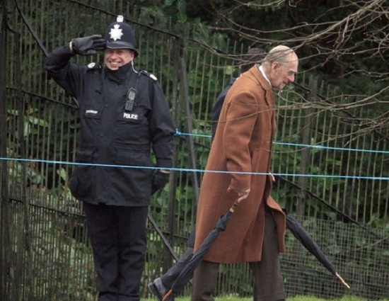 Al príncipe Philip, por su carácter peculiar, le han apodado el príncipe políticamente más incorrecto del mundo. En esta fotografía el príncipe tiene 91 años. El marido de la reina, pasando cerca del policía, dejó caer otra broma real de turno. Estricto policía no pudo contener la risa, tratando de mantener la posición de firme. Y el propio príncipe, a sus 91 años, tras sufrir una larga enfermedad, está caminando una fría mañana hacia la iglesia, como si nada hubiera pasado. Mientras tanto, la reina va allá en coche. ¡Muy al estilo de él!