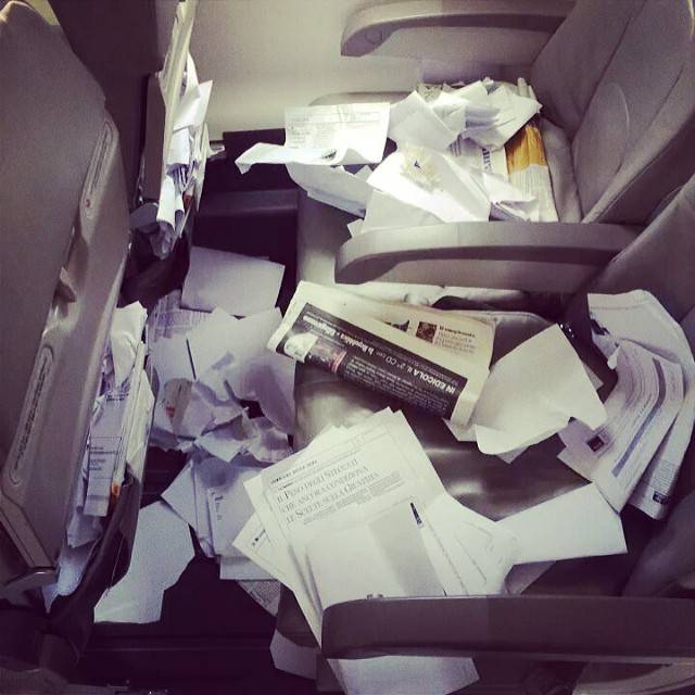 Tal vez esto se vea como una vileza e incompetencia por parte de la azafata, pero ella fotografió las escenas más indecorosas, formadas por pasajeros, durante muchos vuelos. Cuando veas estas fotos, entenderás por qué se decidió hacer esto… El comportamiento de estos pasajeros, simplemente no se ajusta a ninguna norma de conducta social.