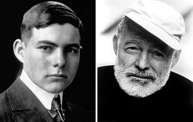 8. Regresemos a Hemingway. En la primera foto, él está estudiando, en la segunda, a los muchos años de la vida escolar.