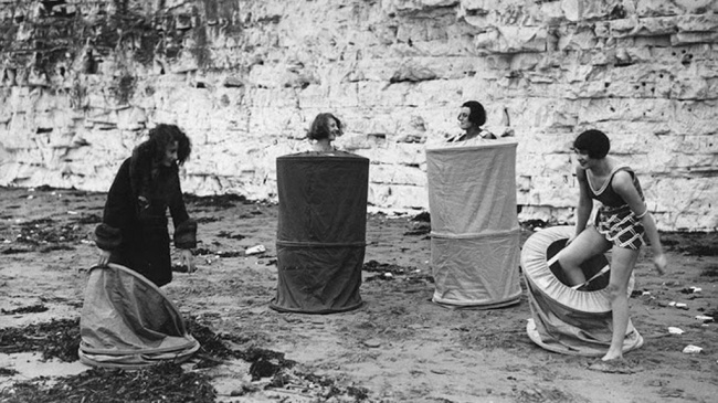 Las chicas en una playa pública, año 1929.