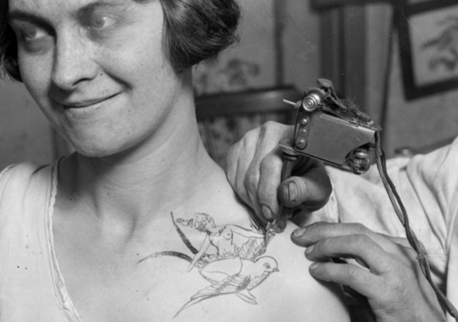 El primer salón de tatuajes, año 1928.