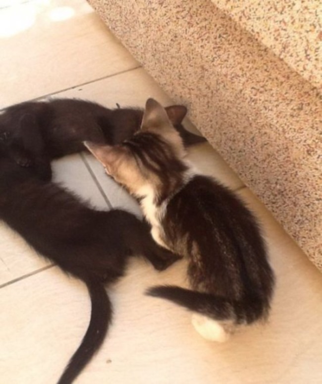 Parece que la mamá gata tuvo un amorillo con un salchicha…