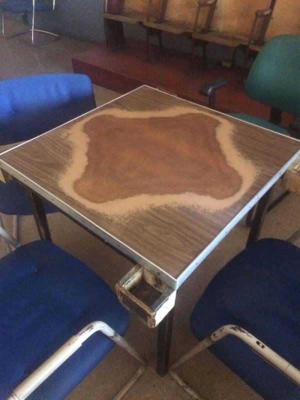 - Al parecer, esta mesa fue testigo de un montón de conversaciones importantes.