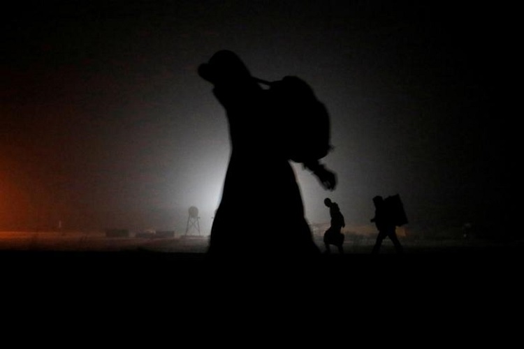 El grupo de migrantes de Djibouti y Somalia cruza la frontera entre Canadá y los Estados Unidos, cerca de Emerson, Manitoba, 27 de Marzo, 2017