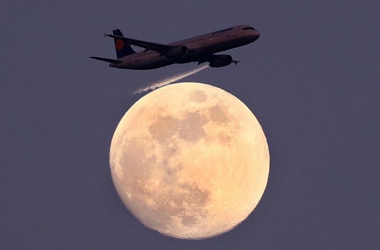 El avión en el cielo de Frankfurt, Alemania, 9 de Abril, 2017