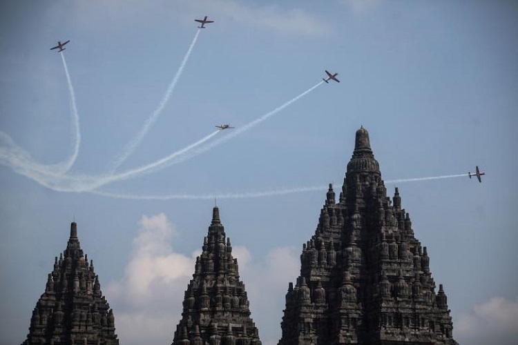 Show aéreo internacional de Yogyakarta, en Java Central, Indonesia, 27 de Abril, 2017