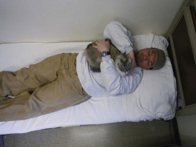 El prisionero Richard Amaro y su gata Clementina, dentro del marco del programa de ayuda a los gatos en los refugios para animales sin hogar.