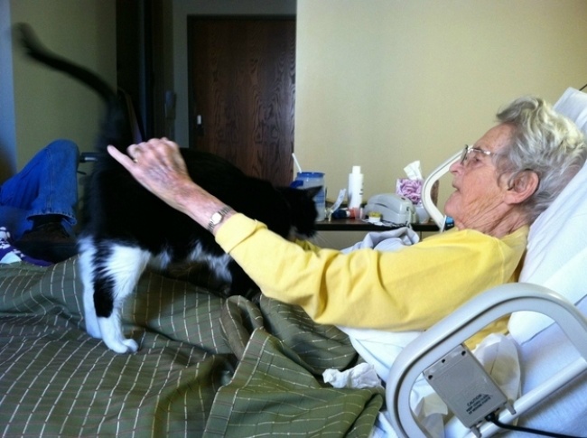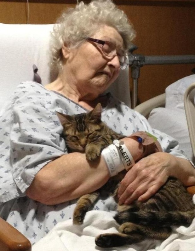 La gata se coló en el hospital, para visitar a su dueña enferma.