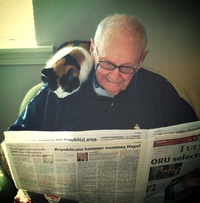 Desde que su mujer falleció, su gata no lo abandona ni por un minuto.