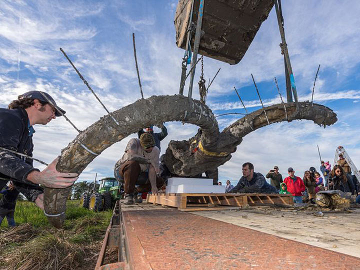James es un granjero y se dedica a la agricultura. Hace poco empezó a cavar una zanja para instalar una canalización nueva. En el transcurso de su trabajo el granjero dio con un objeto muy singular. Tras haber avanzado con sumo cuidado, en menos que una hora, el asombrado granjero tenía ante sus ojos nada más ni nada menos que… ¡los huesos de un mamut!