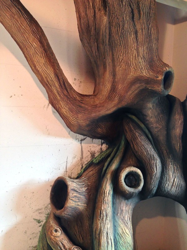 A las ramas finas del árbol era difícil ponerles el cemento, por lo que fueron elaboradas de papel-maché.