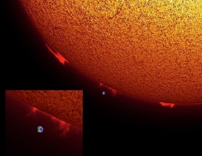 En caso de que hayas olvidado que somos apenas un granito de arena en medio de este vasto Universo, mira las imágenes que comparan el tamaño de la Tierra con el Sol.