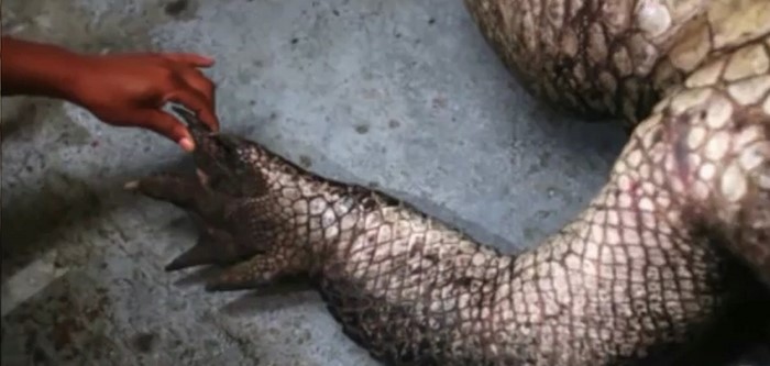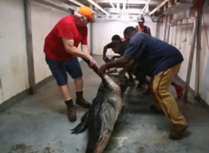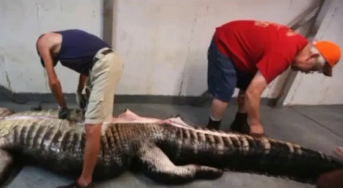Sin embargo, el peso del cocodrilo no fue la mayor sorpresa… El taxidermista quiso disecar el cadáver del cocodrilo gigante, y personalmente abrió su vientre. ¡Lo que vio en su interior hizo que todos los presentes se estremecieran de miedo!