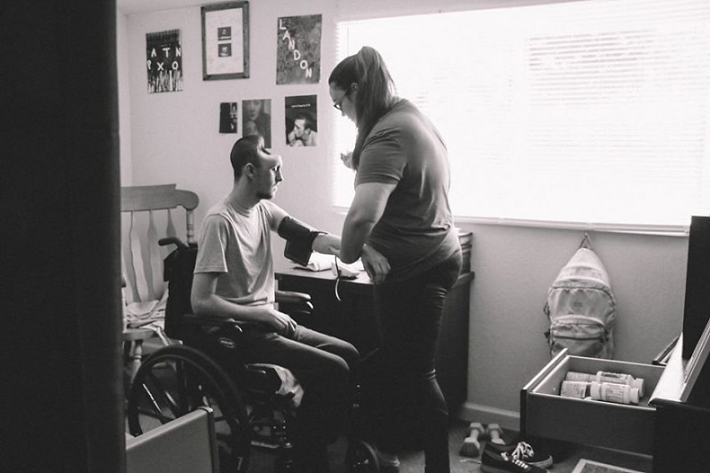 «Todos los días me despierto para cuidar a nuestro hermoso niño y mi esposo. Preparo las comidas, hago terapia física, terapia del habla y terapia ocupacional. Lo ayudo con la higiene personal. Lo ayudo a caminar. Lo ayudo con todos los aspectos de su vida».
