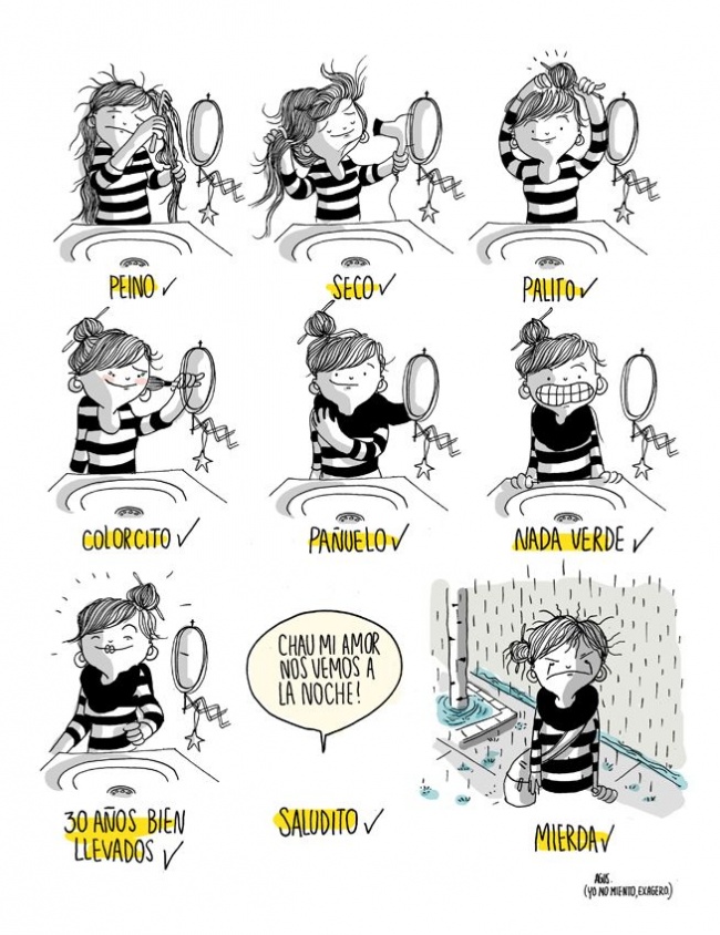 Esta diseñadora e ilustradora ha publicado sus divertidas viñetas de manera virtual y recientemente decidió recopilar su obra en un libro titulado «Diario de una volátil», el cual ya ha sido traducido a varios idiomas. ¿Qué mujer no se ha sentido alguna vez así, en algún momento de su vida? Si observas estas ilustraciones, de seguro encontrarás el lado gracioso de muchas de las situaciones presentes en la vida cotidiana.