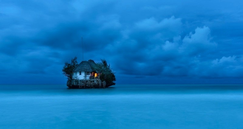 En la costa de Zanzibar se ubica el restaurante The Rock. Cuando al atardecer prendieron las luces del restaurante, el fotógrafo Dale Johnson no perdió la oportunidad de tomar su foto.