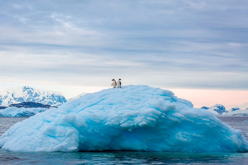 Al realizar un tour por las vías acuáticas alrededor de la península Antártica, el fotógrafo David Menaker capturó con su cámara a dos pingüinos Adelaida que admiraban su entorno desde la punta de un iceberg.