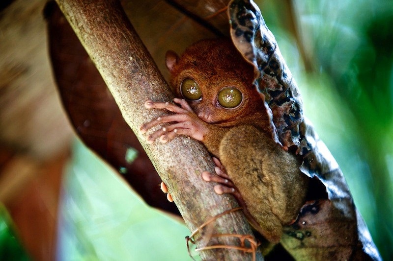 Ante la cámara de Bonie Stewart, el pequeño tarsero nos sorprende con sus impresionantes ojos bien abiertos. ¡Este diminuto primate nocturno (no más de 15 centímetros), endémico de Filipinas, es toda una sorpresa!