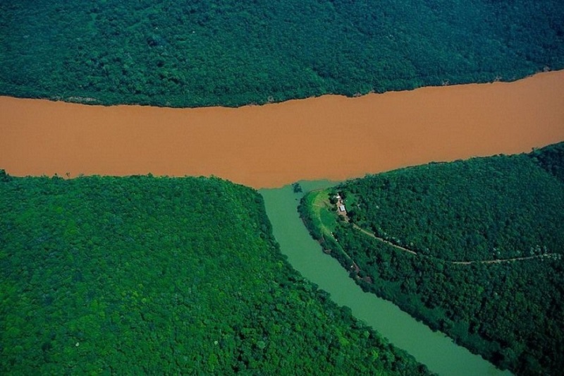 La confluencia del río Uruguay y su afluente, en la provincia de Misiones, Argentina.