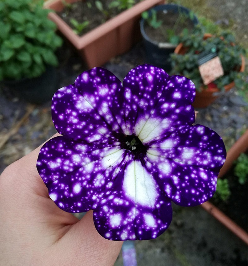 13. Qué hermosa petunia. El cosmos entero en una flor.