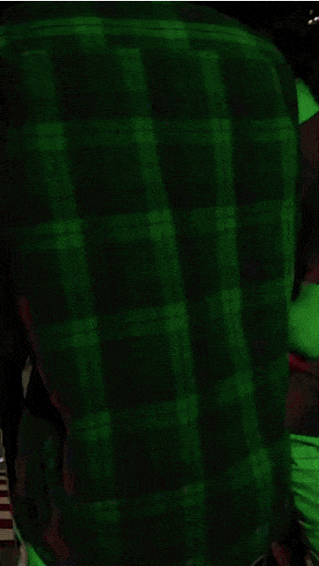 14. Un cambio vertiginoso en el color de la camisa de un chico, bajo la influencia de la música de color en el club.