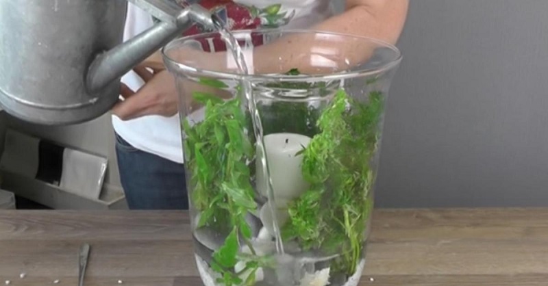 ¡Qué maravilloso se ve este florero decorativo! Sólo faltan unos pocos pasos: introducir un vaso dentro del otro, poner las piedras y las conchas en el fondo, añadir las plantas, prender la vela, agregar el agua – ¡y sucederá un milagro! Mira el video para mayor detalle y descubre cómo, en un par de minutos, crear una mágica vela bajo el agua.