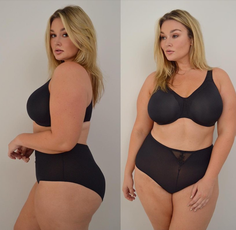 Pero hace 4 años en el mundo de la moda surgió una nueva tendencia: las modelos de tallas grandes comenzaron la conquista de los podios. Esto le abrió las puertas a Hunter a un mundo completamente nuevo para ella. La misma chica expresó recientemente su indignación por el prefijo plus-size: «Prefiero el nombre de modelo con formas exuberantes.