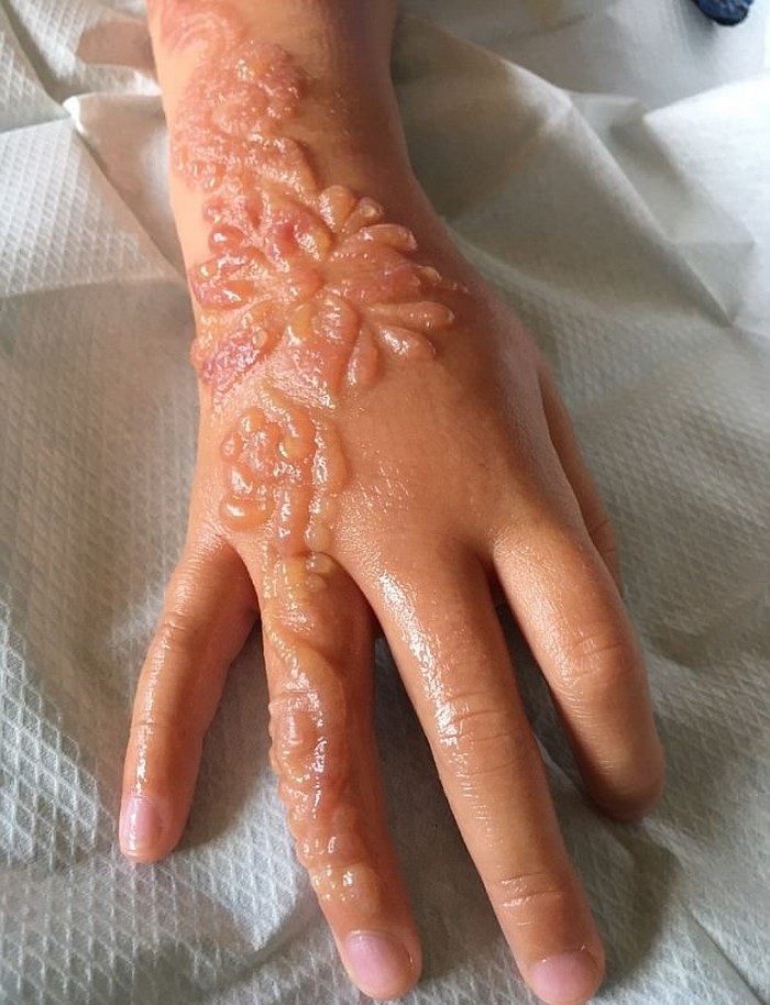 La reacción muy fuerte del cuerpo fue causada por una combinación de varios factores. Los tatuajes fuera de los salones especializados, a menudo, son realizados con la henna negra, a la cual le añaden una variedad de «químicos». El organismo de la niña respondió a esta invasión con una reacción alérgica retardada y muy fuerte.