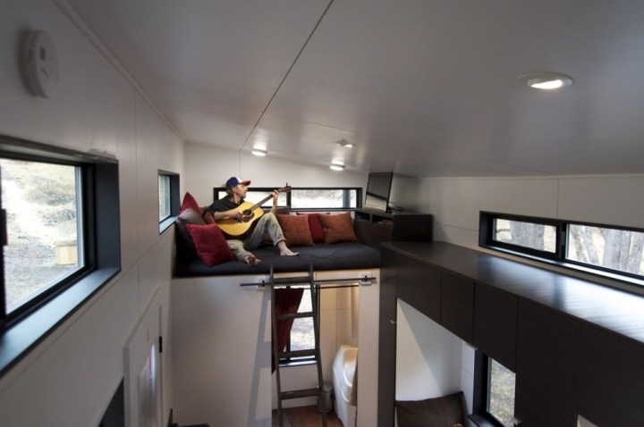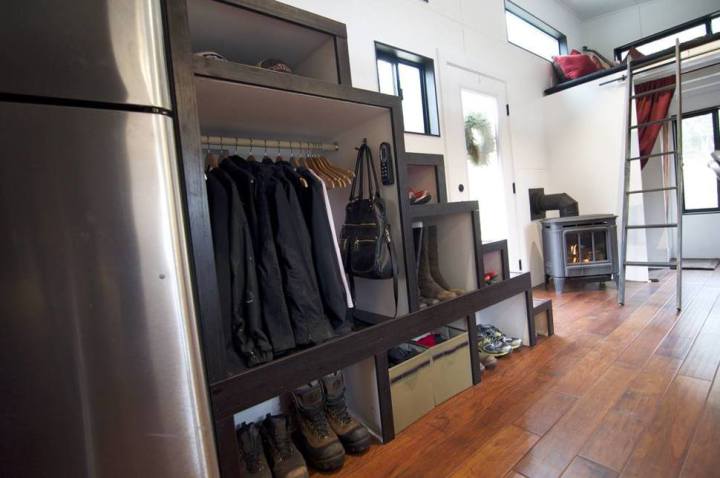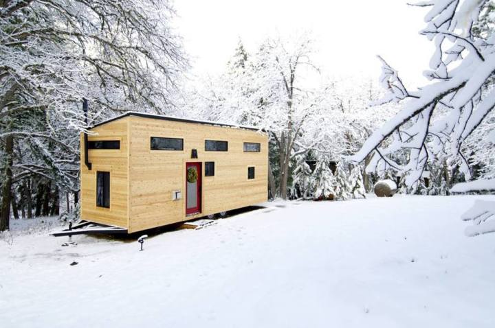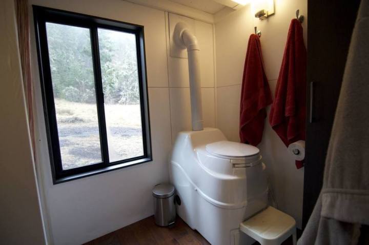 Otra singularidad de esta casa está en que la vivienda se encuentra sobre una plataforma con ruedas. ¡La pareja puede irse de viaje sin salir de ella!