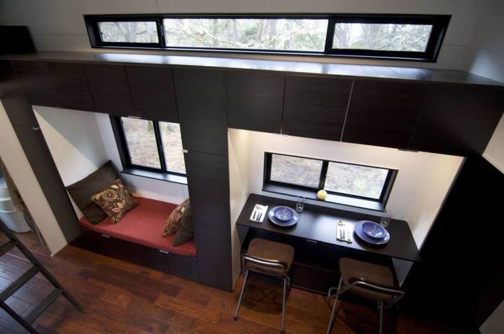 La casa incluso tiene una zona de lectura, mientras que la mesa de comedor fácilmente se transforma en una de trabajo.