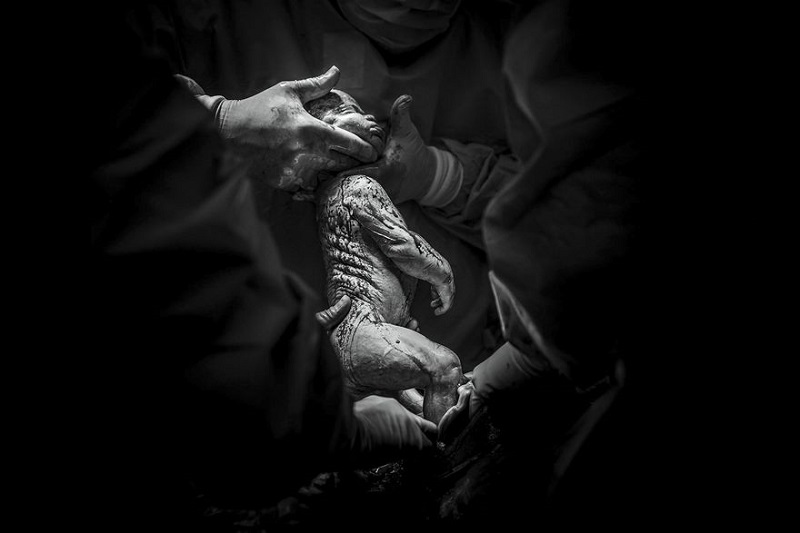 La llegada al mundo del bebé es una agotadora lucha de la madre por la vida del niño.