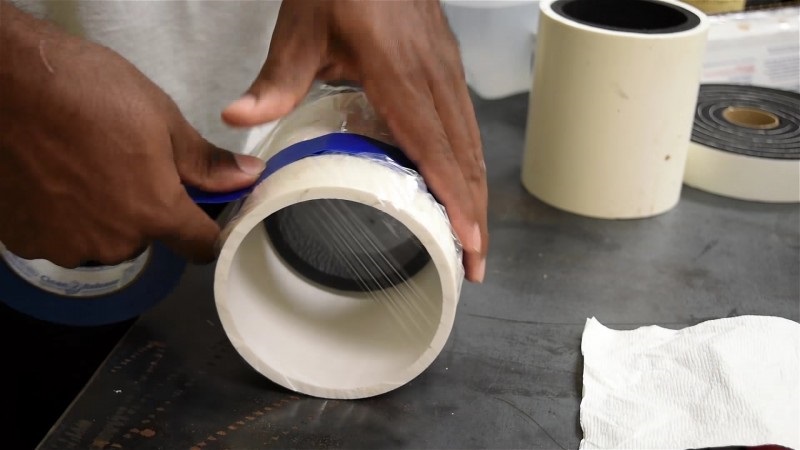 3. En la parte inferior del tubo, pega una envoltura de plástico.