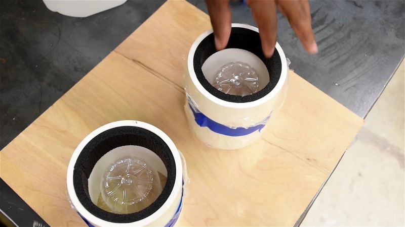 4. Coloca dentro del tubo una botella de plástico recortada.
