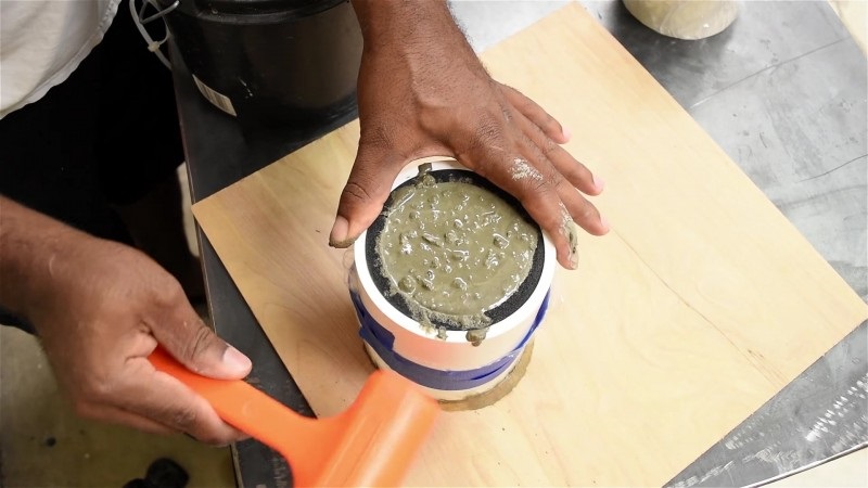 5. Prepara el cemento y échalo dentro del tubo de plástico.