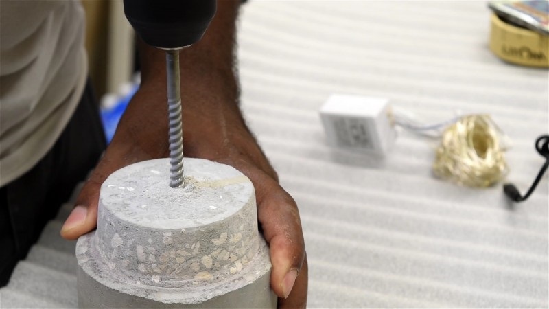 7. Perfora un agujero en la copa de hormigón resultante, usando un taladro.