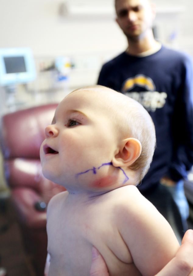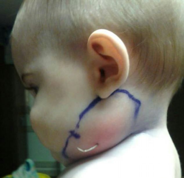 Sin embargo, la situación continuó empeorando: por la mañana la hinchazón en la mejilla dela bebé se había duplicado. Mya fue hospitalizada con sospecha de infección por estafilococos en los ganglios linfáticos.