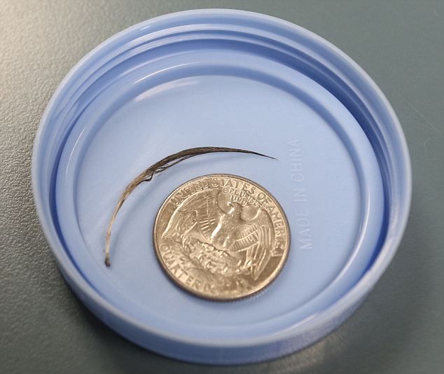 Unas horas después, la inchazon empezó soltar algo extraño… Resultó ser…¡una pluma de cinco centímetros!