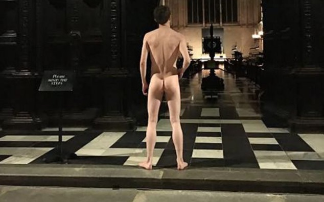 Estos jóvenes teólogos tampoco se ruborizan, al mostrar sus nalgas. El estudiante Godfrey posa en el techo.