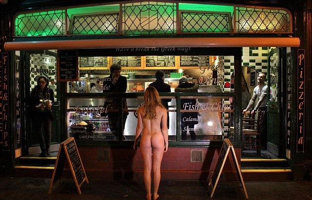 Cameron, una estudiante de idioma inglés, fue aún más lejos y posó desnuda en la calle, justo frente a las vitrinas de un café.