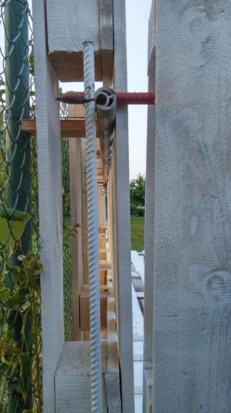 En la foto se puede ver la forma de fortalecer las paredes, construidas de palets. Pero también puedes simplemente usar un martillo y clavos.