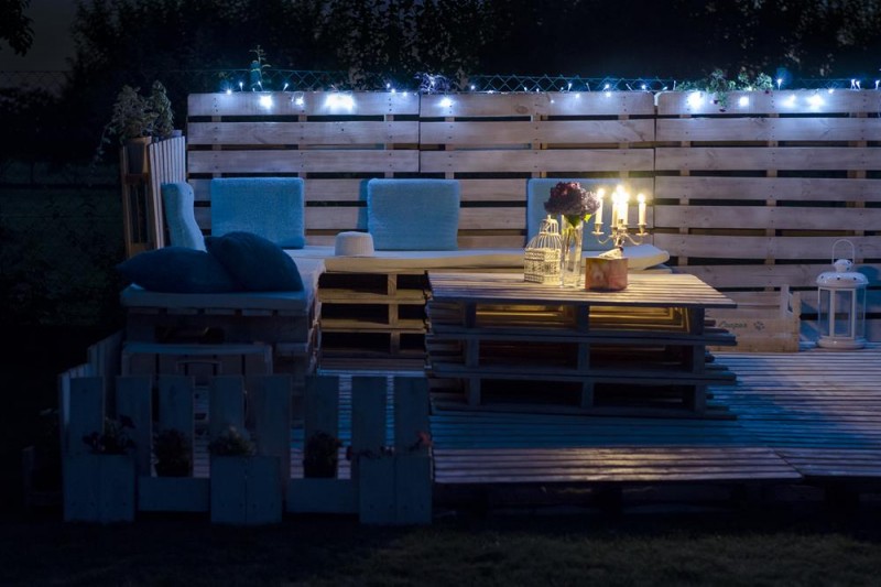 Tras la puesta del sol, unas velas y guirnaldas le darán un toque romántico a tu jardín.