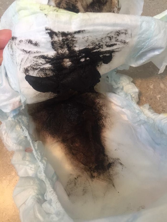 La medicación ayudó a la bebé. Sin embargo, poco después, al cambiarle el pañal, Becky se quedó horrorizada. El pañal de su hija era un betún de zapato negro. La madre, preocupada, llamó a línea-ayuda, donde le aconsejaron que fuera rápidamente al hospital.
