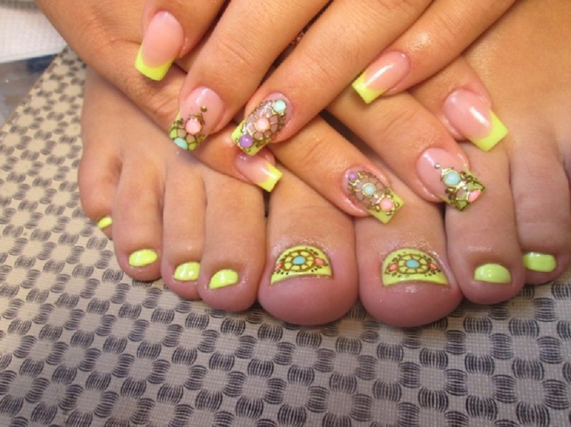 Nunca combines un neón con el otro – luce muy vulgar. Inclusiones discretas de neón en la manicura será la elección correcta, además puede ser usado como color principal en la pedicura.