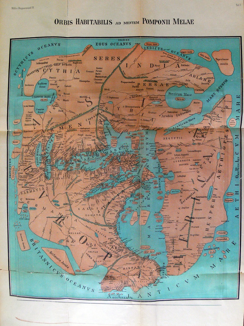 Mapa del mundo — de Pomponio Mela, geógrafo romano, año 43 a.c.
