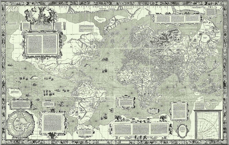 Mapa del mundo, dibujado por Abraham Ortelius, el autor del primer atlas geográfico de tipo moderno en la historia. El año 1564.