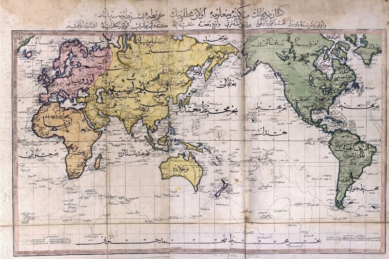 Mapa del mundo hecho en el Imperio Otomano en el año 1803.