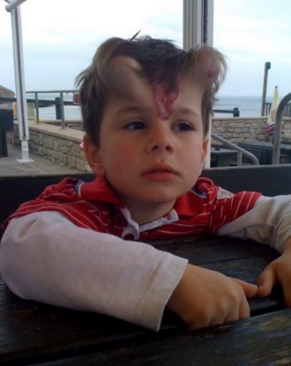 Sin embargo, este pequeñito, George Ashman, nació con una gran marca de nacimiento de un intenso color rojo – en la misma frente. La madre del chico, Karen, sabía que no le iba a ser fácil, mientras segía marcado por este signo. Para evitar que sufriera burlas e intimidación, ella tomó la decisión de librarlo de la marca.