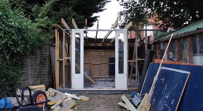 Él se propuso construir una pequeña casa para sí mismo, su propia «cueva», con el mínimo de coste y máximo de beneficios. ¿Cómo lo hizo? Pues, fácil: ¡Reciclando materiales previamente utilizados!
