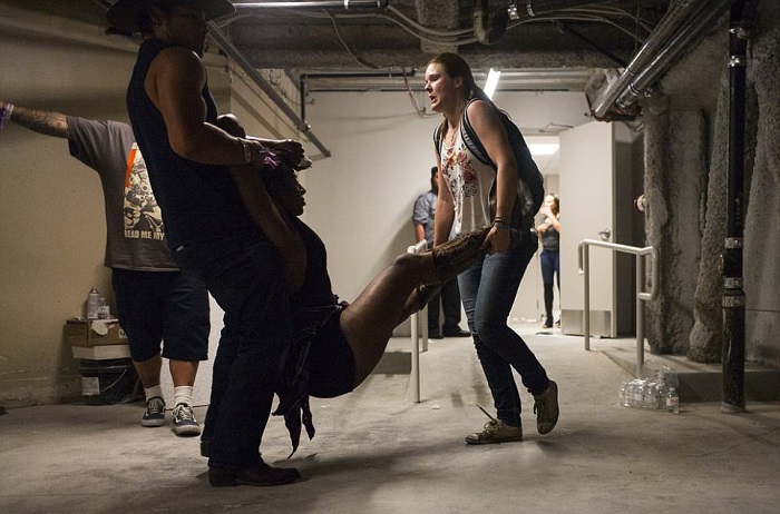 Algunos testigos cuentan que, aproximadamente 45 minutos antes de la masacre, fue vista una mujer latina de 50 años de edad, que gritó entre la multitud: «¡Ellos están alrededor! ¡Todos ustedes morirán hoy!» Los guardías la hicieron abandonar el lugar.
