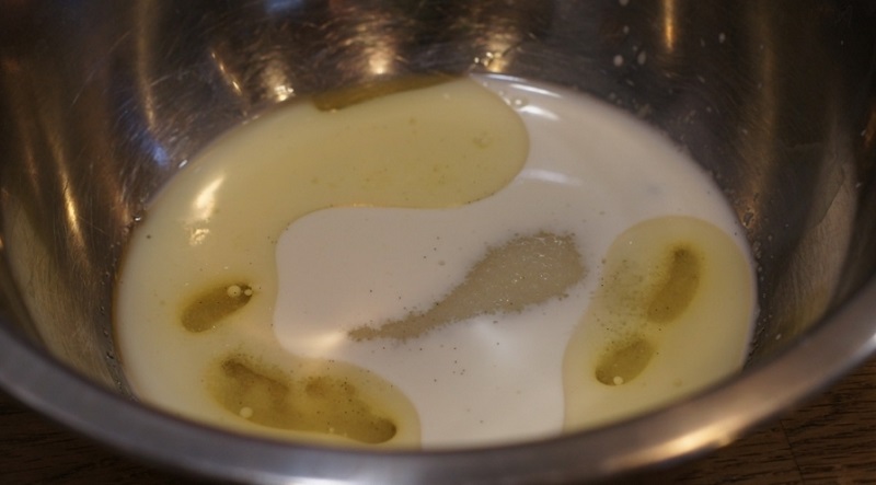 - Pon la mezcla de limón en una cacerola pequeña, añade la leche de coco y el aceite de oliva. ¡Pon la mezcla a calentar, pero no la dejes hervir!